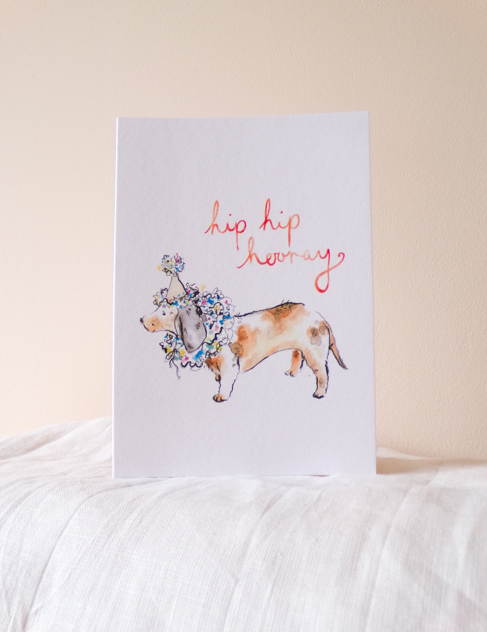 Original watercolour and pen and ink printed in small batches onto 300 gsm diamond white card. A6 and complete with a la la lu embossed envelope.