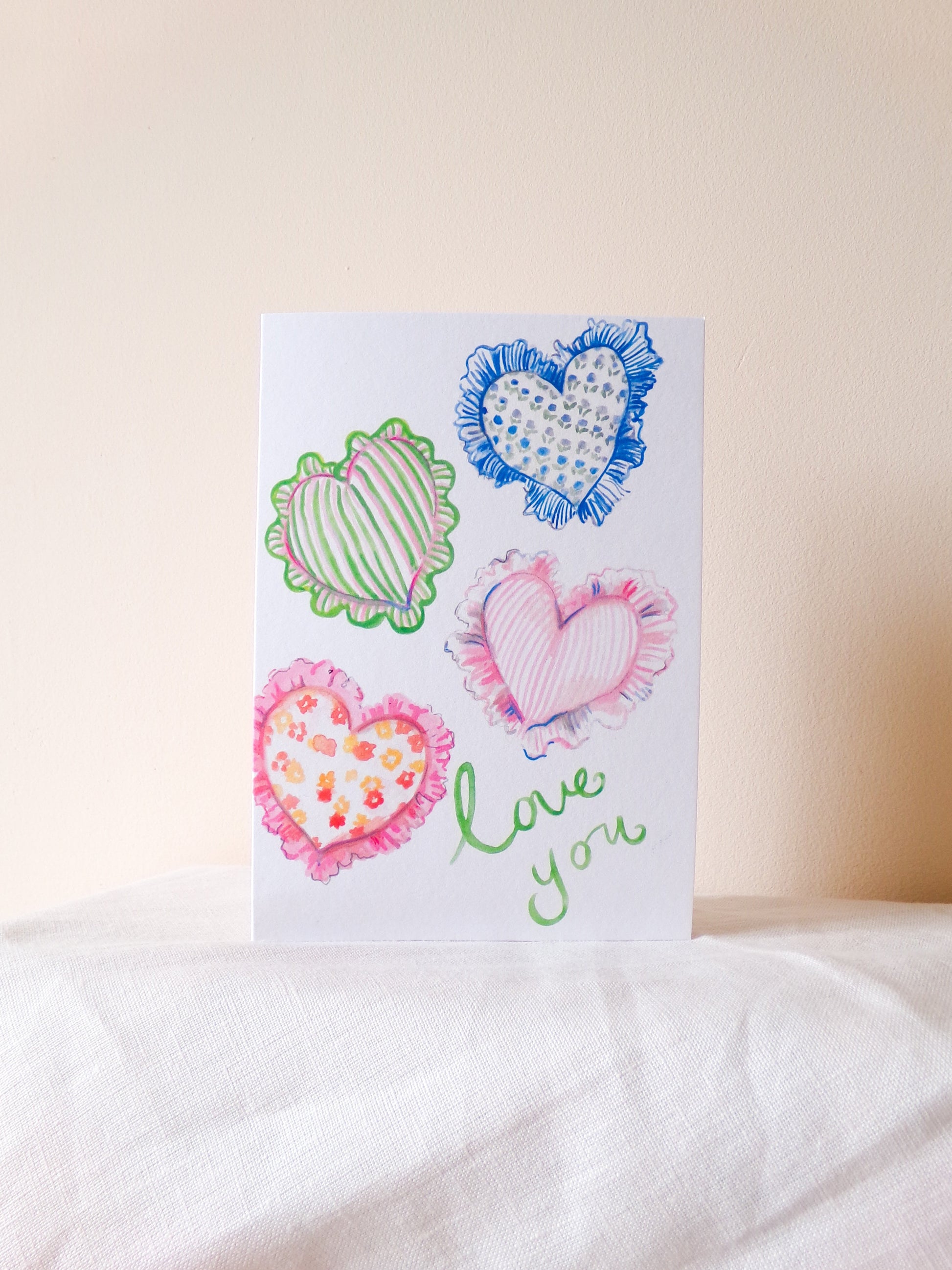 Original watercolour printed in small batches onto 300 gsm diamond white card. A6 and complete with a la la lu embossed envelope.